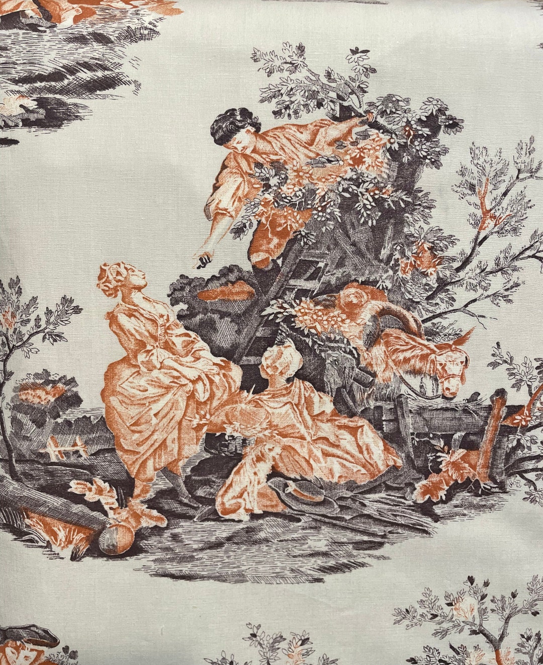 Stylized Pictorial Toile Fabric Figures In Ombre And Flora Etsy